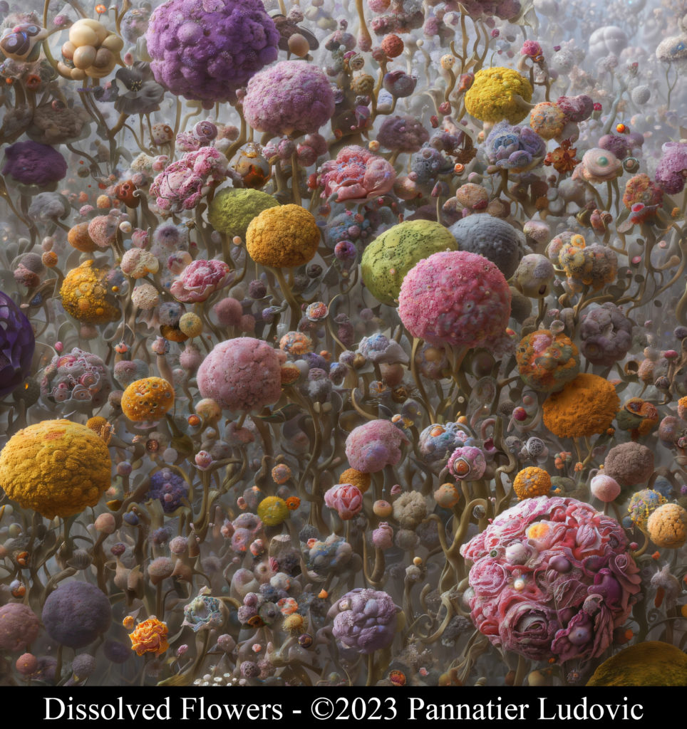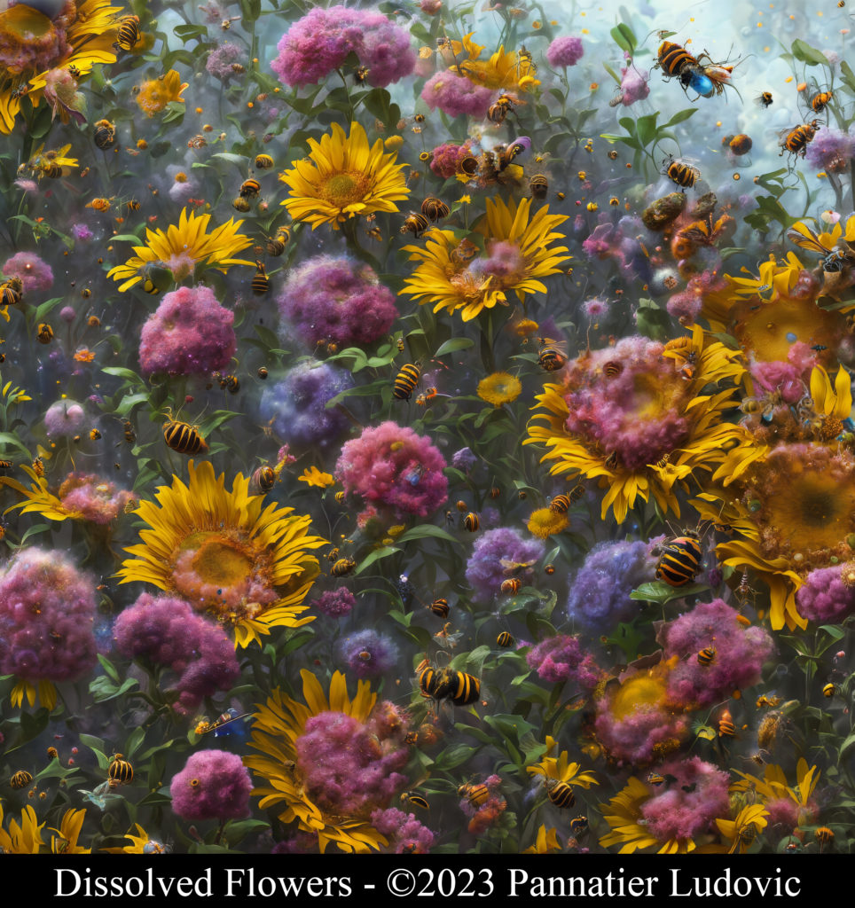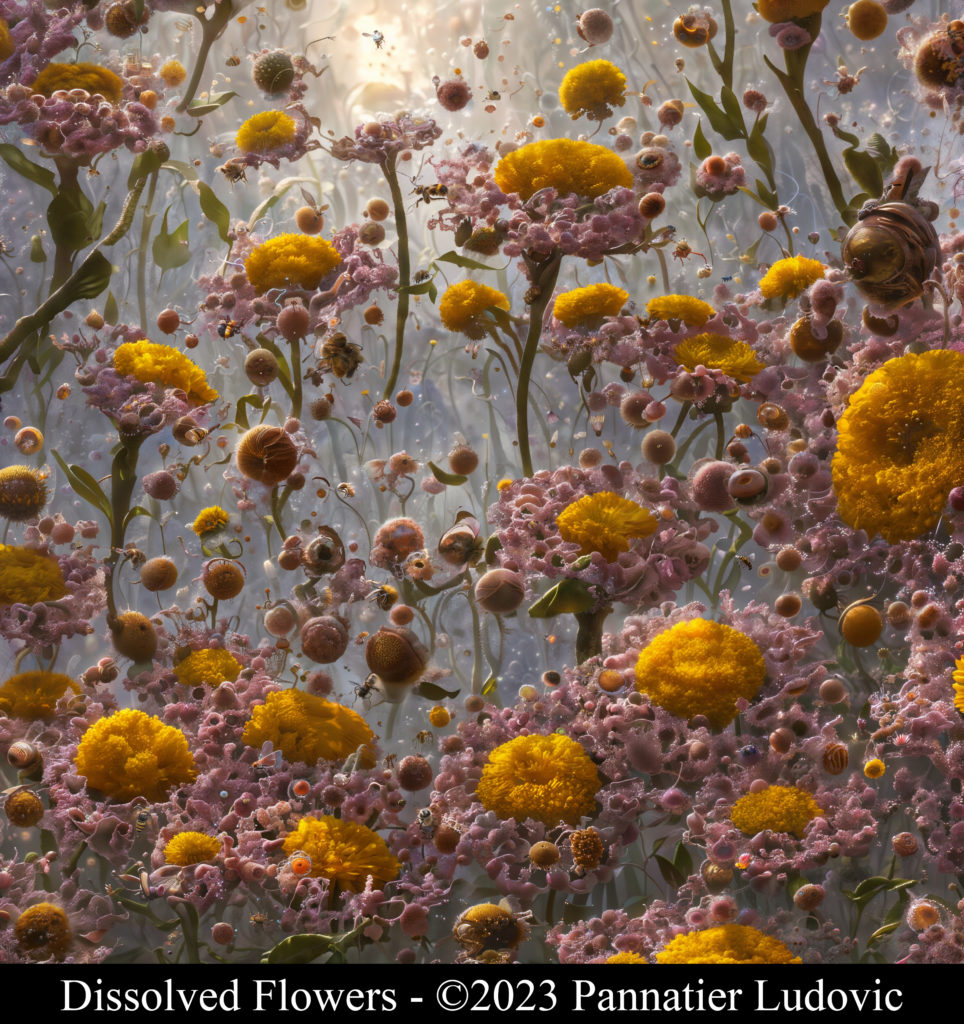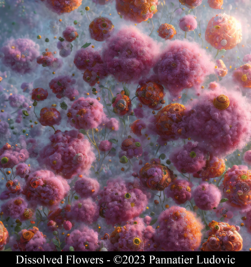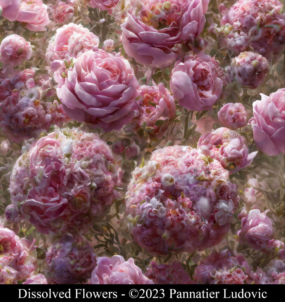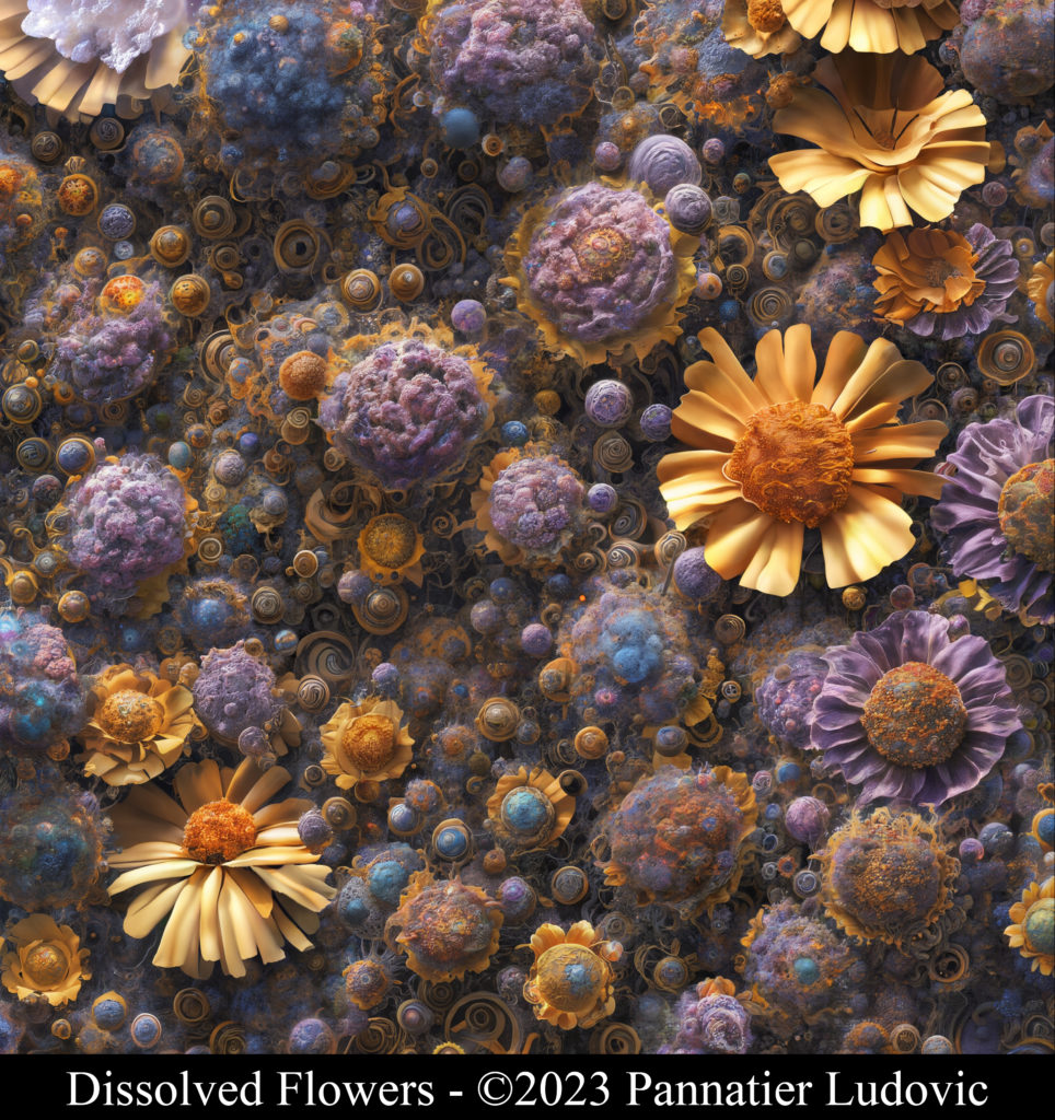 Dissolved Flowers (Les Fleurs Dissoutes) nous questionne sur la réalité. Ces fleurs oniriques n’existent pas, et pourant elles semblent exister. Nous aimerions qu’elles existent, mais pourtant…